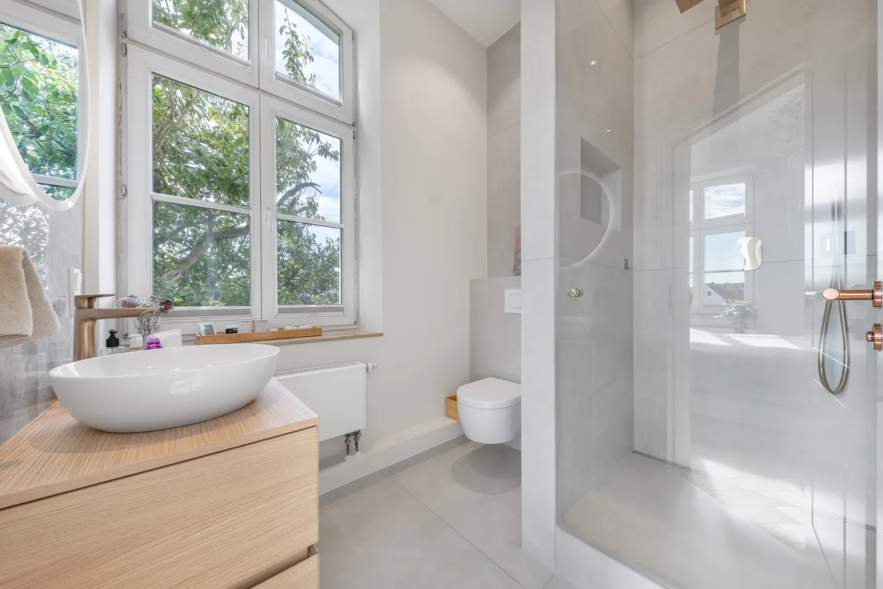 - Gaszentralheizung (Kessel aus 2024), Heizkörper, zentrale Warmwasseraufbereitung