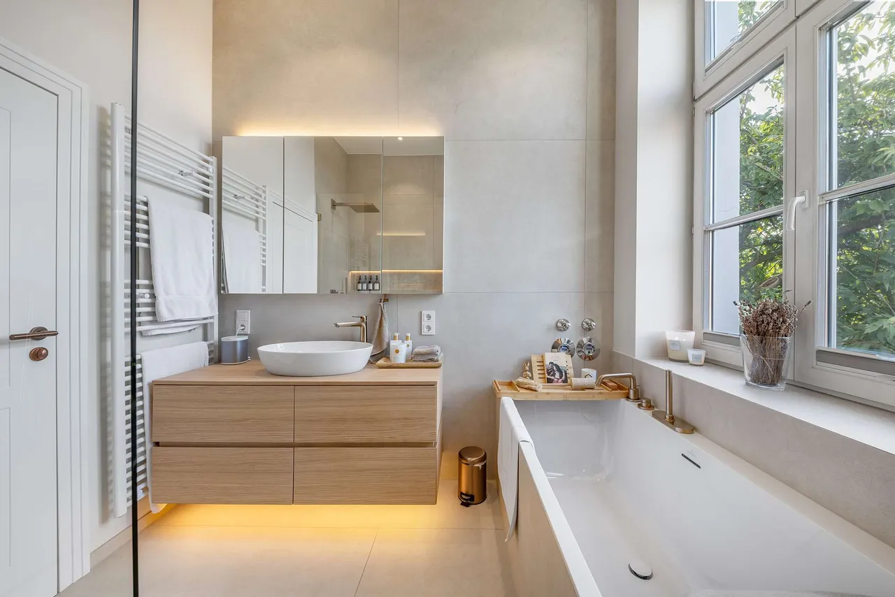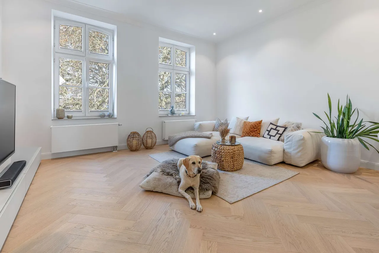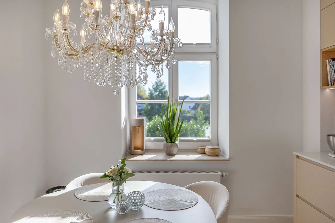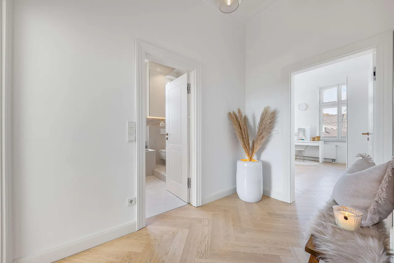 Erst 2024 wurde diese Wohnung für rund 200.000 Euro auf ein Niveau gebracht, das höchsten Ansprüchen genügt. Von sorgfältig gespachtelten Wänden (Q2) mit Fliestapete über elegante Stuckleisten bis zu den hochwertigen Simonswerk-Türen – hier zeigt sich ein klares Bekenntnis zu Qualität und Langlebigkeit.