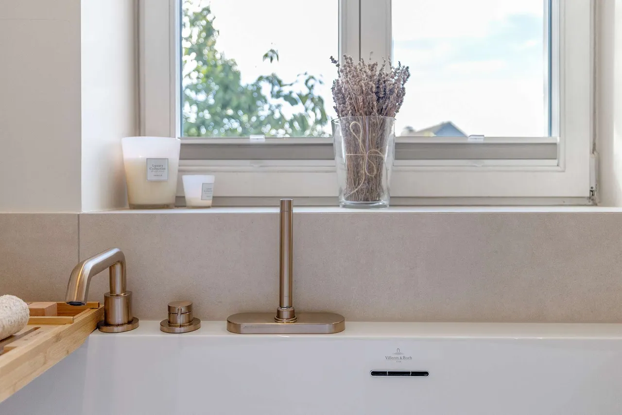 - Hauptbadezimmer mit Wanne und begehbarer Dusche