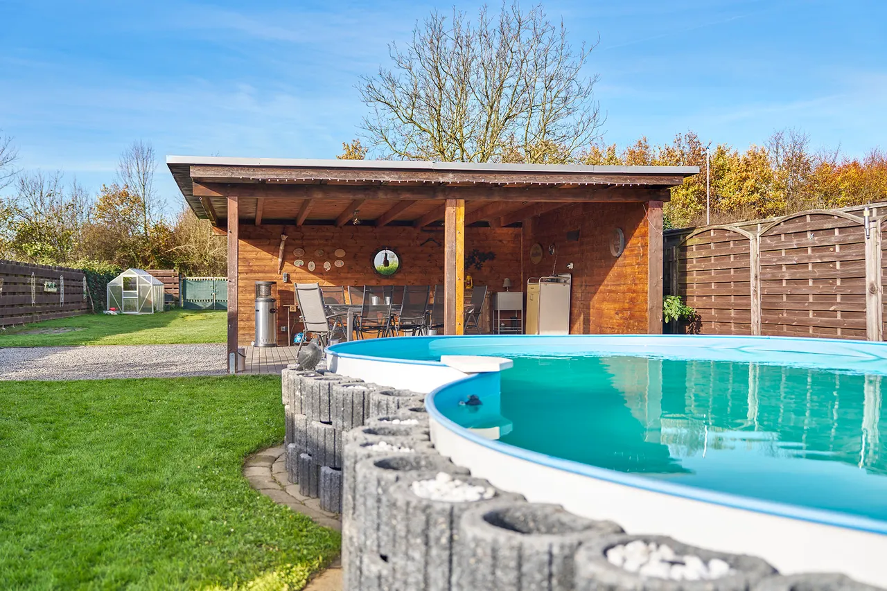 - Pool 6,80 Meter x 3,50 Meter x 1,20 Meter (0,5 Meter im Boden eingelassen)