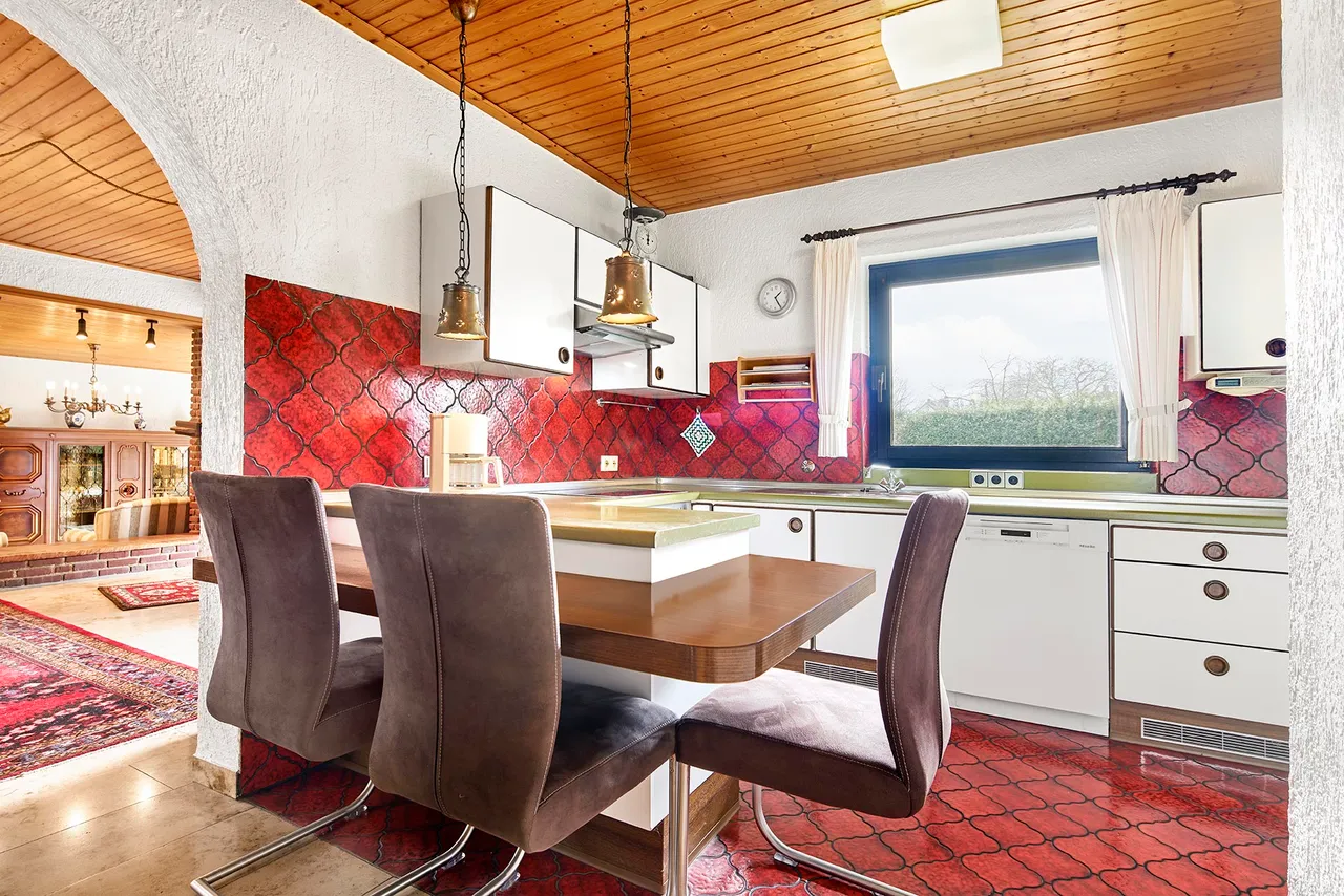 Schon beim Betreten des Hauses werden Sie von einem einladenden Ambiente empfangen. Ein geräumiges Wohnzimmer mit einem gemütlichen Kamin und großzügigen Fenstern, die den Blick auf den liebevoll gestalteten Garten freigeben, schafft eine Atmosphäre von Behaglichkeit und Wärme. Die halboffene Küche ist harmonisch mit dem Essbereich verbunden, und durch das Schiebeelement im Wohnzimmer oder den Zugang von der Küche zur Terrasse wird eine nahtlose Verbindung zum Außenbereich geschaffen - ideal für entspannte Momente im Sommer oder gesellige Zusammenkünfte im Freien.