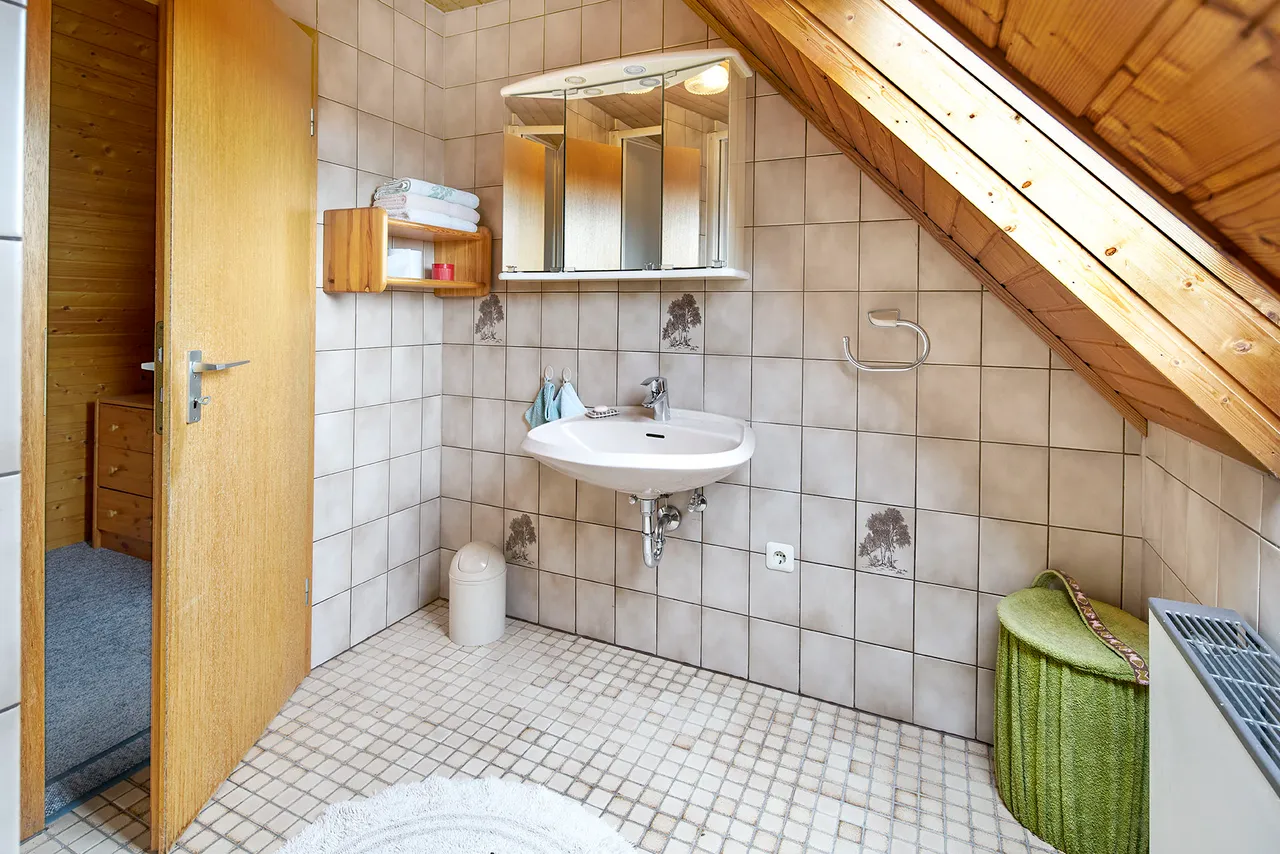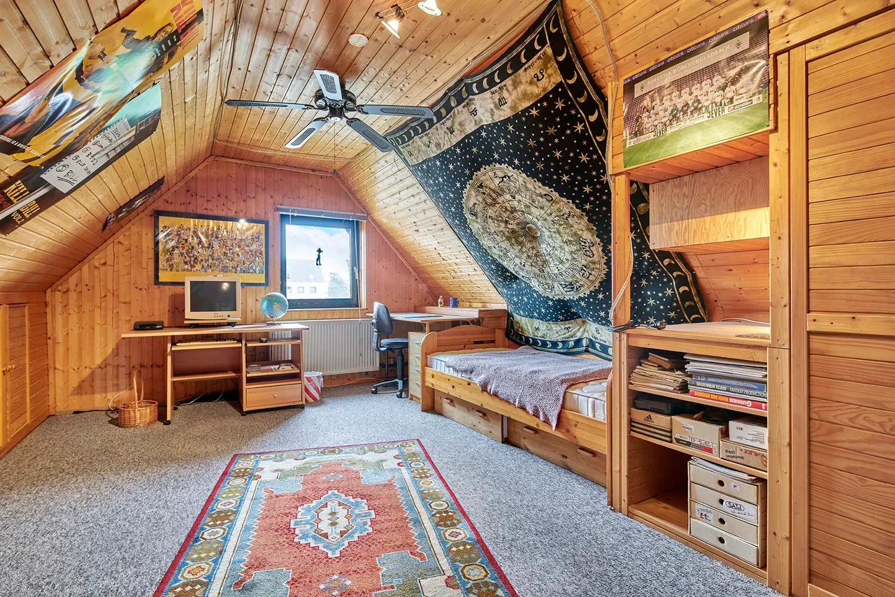 Für zusätzliche Entfaltungsmöglichkeiten bietet der ausgebauten Spitzboden einen Hobbyraum mit eigenem Badezimmer, der Raum für Kreativität schafft.