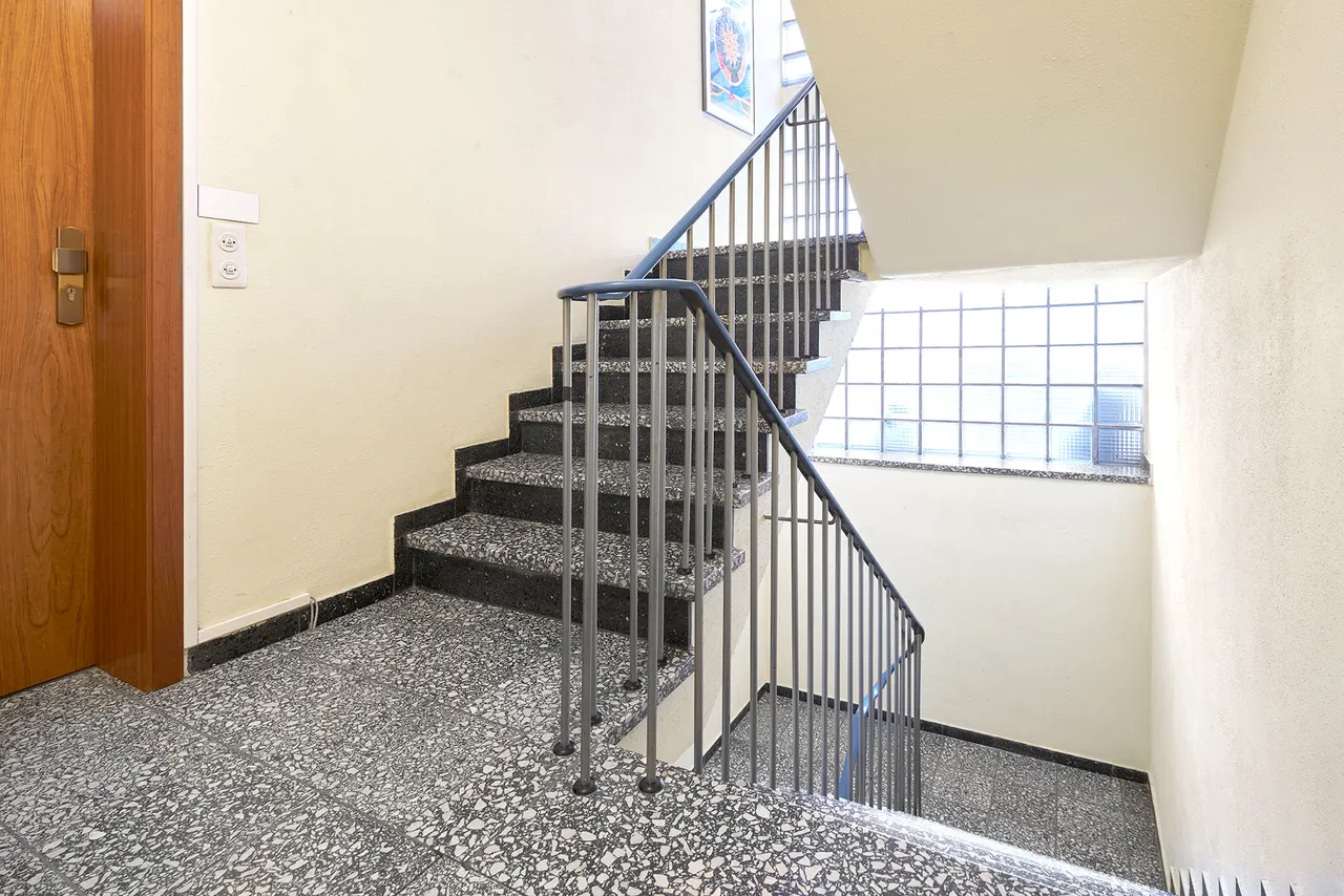 Derzeit ist die Wohnung für rund 700 Euro, zzgl. Betriebskosten, an eine Psychotherapeutin gewerblich vermietet. Das Mietverhältnis kann jährlich mit sechmonatiger Frist zum Jahresende gekündigt werden. Die Nutzung der Immobilie zu Wohnzwecken setzt eine amtlich genehmigte Nutzungsänderung von Gewerbe auf Wohnen voraus, die vom Eigentümer veranlasst werden muss.
