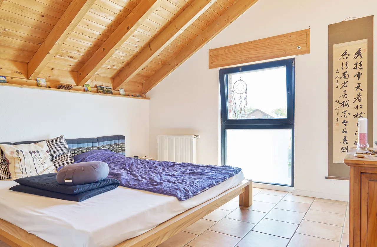 Die beeindruckende Maisonettewohnung im Obergeschoss erreichen Sie über einen separaten seitlichen Anbau aus dem Jahr 2003. Auf rund 146 Quadratmetern Wohnfläche erstreckt sich Ihr neues Domizil über zwei Ebenen und bietet Ihnen viel Platz für individuelle Wohnideen. Das Highlight ist die großzügige Südwest-Terrasse, die direkt vom Wohnzimmer aus zugänglich ist und Ihnen sonnige Stunden sowie entspannte Abende garantiert.