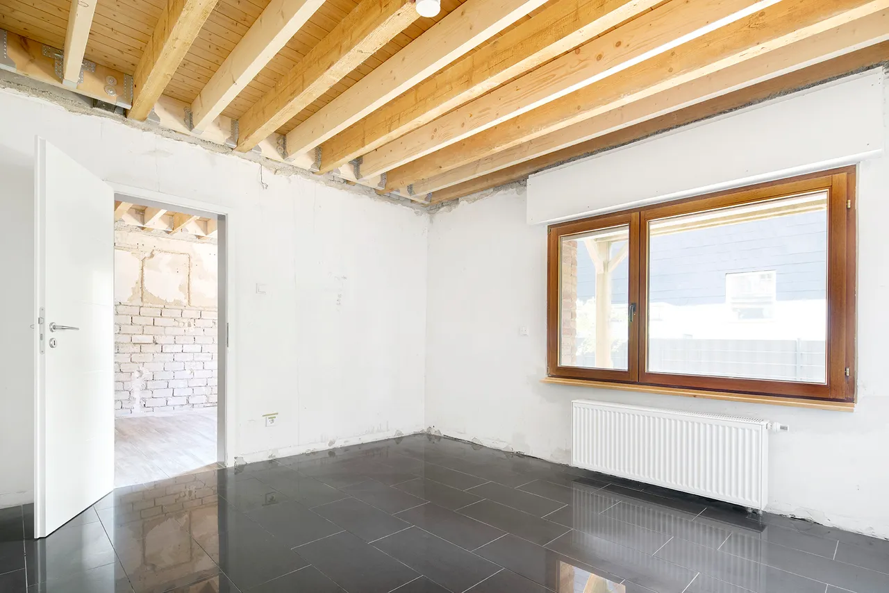 In der EG-Wohnung sind Fertigstellungsarbeiten erforderlich (Elektro teilweise, Putzarbeiten, Trockenbau, Malerarbeiten, Treppengeländer, etc.) Aufwand geschätzt ca. 35.000 Euro.