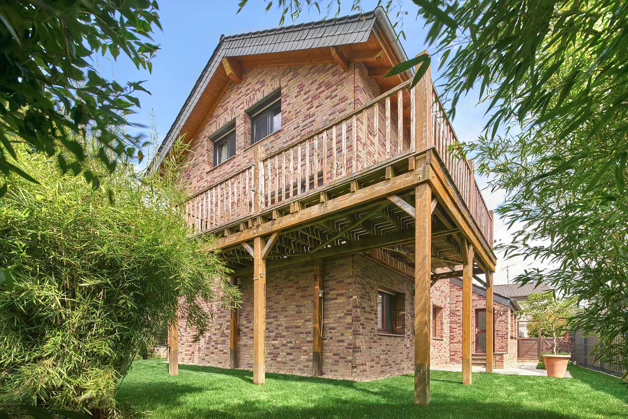 Dieses ursprünglich ca. 1964 erbaute Haus wurde im Jahr 2003 durch eine Aufstockung und einen Anbau erweitert, wodurch eine zweite, vollständig separate Wohneinheit entstanden ist. Beide Wohnungen sind rechtlich eigenständig und nach dem Wohnungseigentumsgesetz (WEG) aufgeteilt.