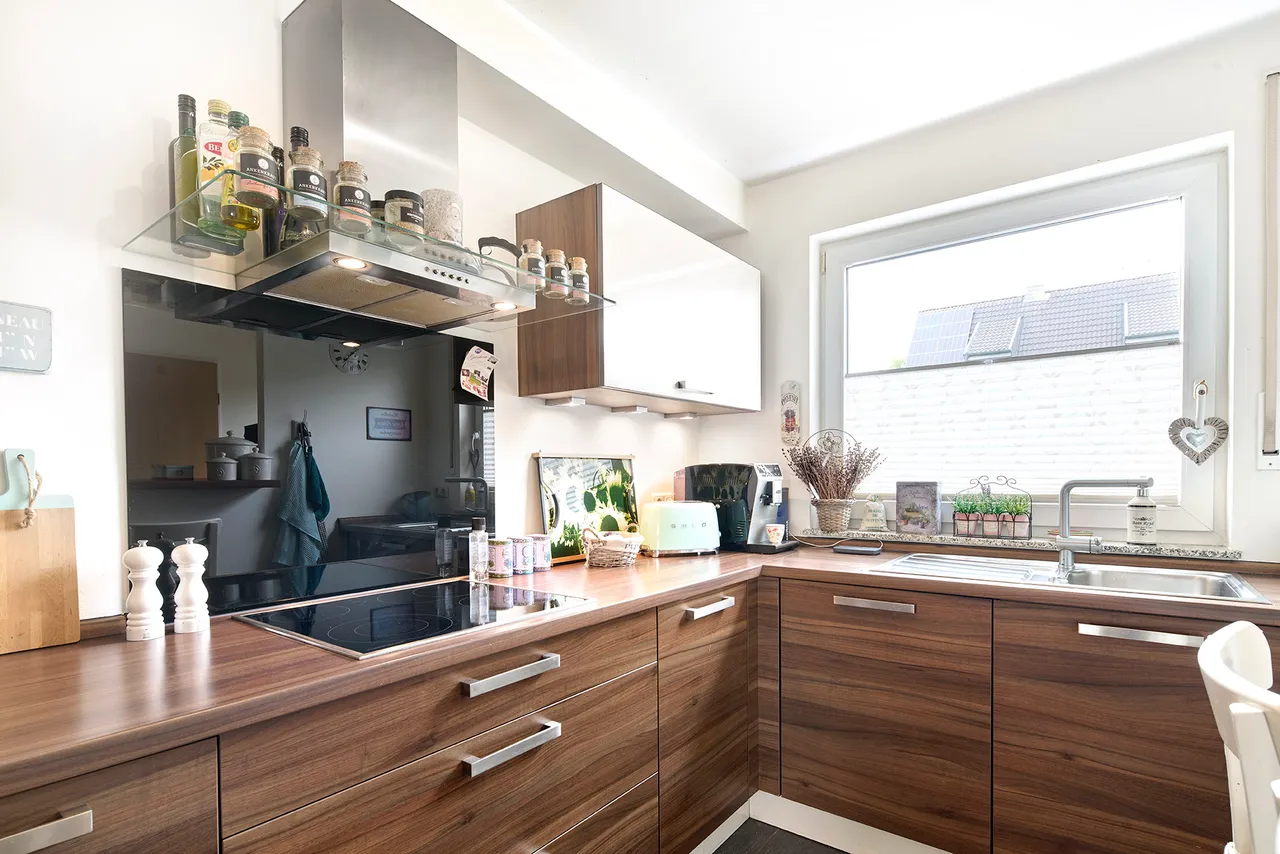 Erdgeschoss - Funktionalität und Komfort: Das Erdgeschoss empfängt Sie mit einem hellen und großzügigen Raumgefühl. Die offene Küche, die bereits im Kaufpreis inbegriffen ist, bietet eine praktische und moderne Ausstattung für den täglichen Bedarf. Sie geht fließend in den Essbereich über und schafft eine funktionale Verbindung zum angrenzenden, geräumigen Wohnzimmer. Von hier aus ermöglicht ein großes Schiebeelement einen direkten Zugang zum pflegeleicht angelegten Garten. Hier verschmelzen Innen- und Außenbereich zu einer harmonischen Einheit, perfekt für entspannte Stunden im Grünen. Ein praktisches Gäste-WC rundet das Raumangebot im Erdgeschoss ab.