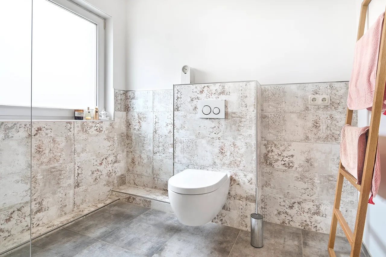 - Tageslicht-Badezimmer (Bj. 2020) mit begehbarer Dusche, WT, WC, Handtuchheizkörper