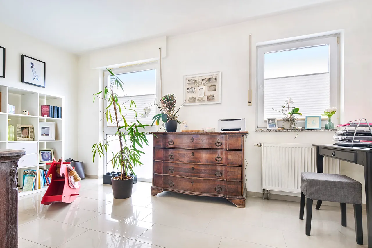 Im Obergeschoss finden Sie zwei helle und ruhig gelegene Schlafräume, die vielfältige Nutzungsmöglichkeiten als Elternschlafzimmer, Kinderzimmer oder Home-Office bieten. Das moderne Duschbad wurde erst im Jahr 2020 komplett erneuert und besticht durch hochwertige Materialien, eine zeitgemäße Gestaltung und eine komfortable Dusche eine wahre Wohlfühloase!