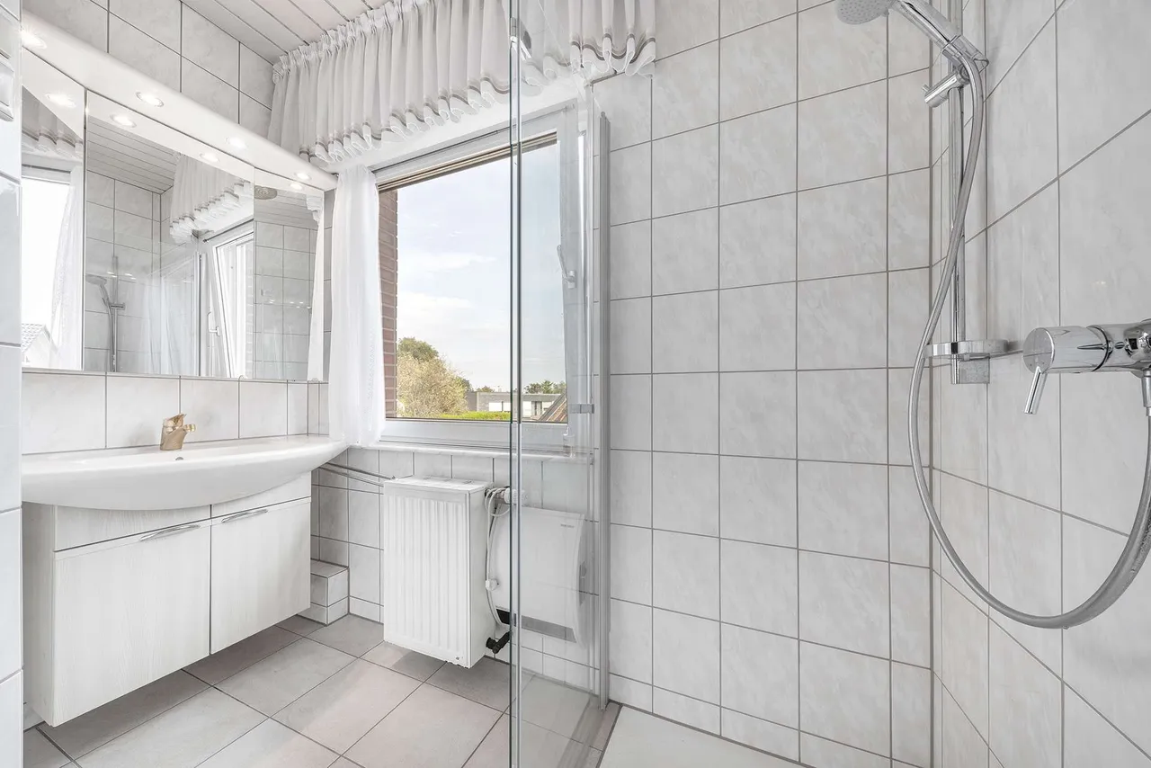 - Sanitär (1. OG): Modernes Bad (2014) mit ebenerdiger Dusche und Fenster. Separates WC (2014).